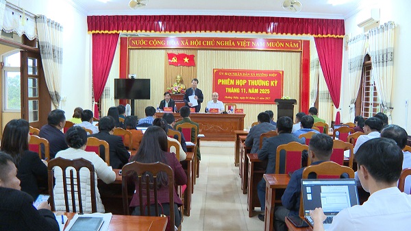 Ngày 04/12/2025, UBND xã Hướng Hiệp tổ chức họp phiên thường kỳ tháng 11, nhằm thông qua các nội dung trình kỳ họp HĐND xã cuối năm. Dự phiên họp có đồng chí Thái Ngọc Châu - Bí thư Đảng ủy, Chủ tịch HĐND xã; đại diện Thường trực HĐND xã; đại diện Ban TT UBMTTQVN xã; đại diện lãnh đạo các Ban của HĐND xã; các đồng chí là thành viên UBND xã, lãnh đạo Trung tâm phục vụ hành chính công; lãnh đạo các đơn vị sự nghiệp, các đơn vị Trường học và các Trạm y tế trên địa bàn xã; đại diện lãnh đạo các đơn vị trực thuộc Trung ương, tỉnh đóng trên địa bàn và Trưởng các thôn, khóm trong toàn xã. Tập thể lãnh đạo UBND xã chủ trì phiên họp.