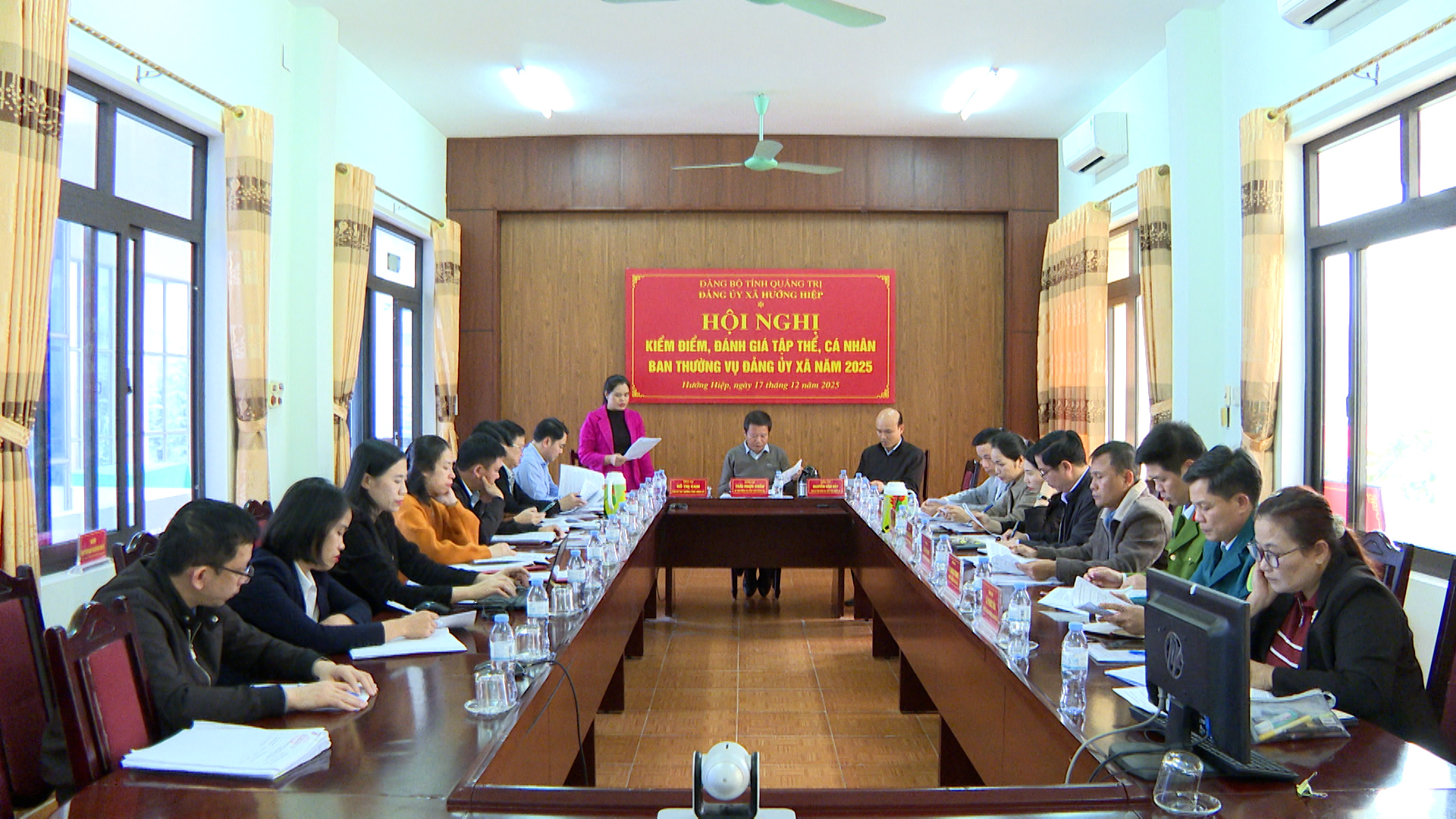 Ngày 17/12/2025, Ban Thường vụ Đảng ủy xã Hướng Hiệp tổ chức Hội nghị kiểm điểm tập thể, cá nhân năm 2025 nhằm đánh giá toàn diện kết quả lãnh đạo, chỉ đạo trong năm; chỉ rõ những hạn chế, khuyết điểm và đề ra giải pháp khắc phục, tạo nền tảng nâng cao năng lực lãnh đạo, sức chiến đấu của tổ chức đảng trong thời gian tới. Dự Hội nghị có đại diện các Ban Đảng, Văn phòng Tỉnh uỷ Quảng Trị, cùng các đồng chí trong Thường trực Đảng ủy, ủy viên Ban Thường vụ Đảng ủy, đồng chí Thái Ngọc Châu – Bí thư Đảng ủy, Chủ tịch HĐND xã chủ trì Hội nghị.
