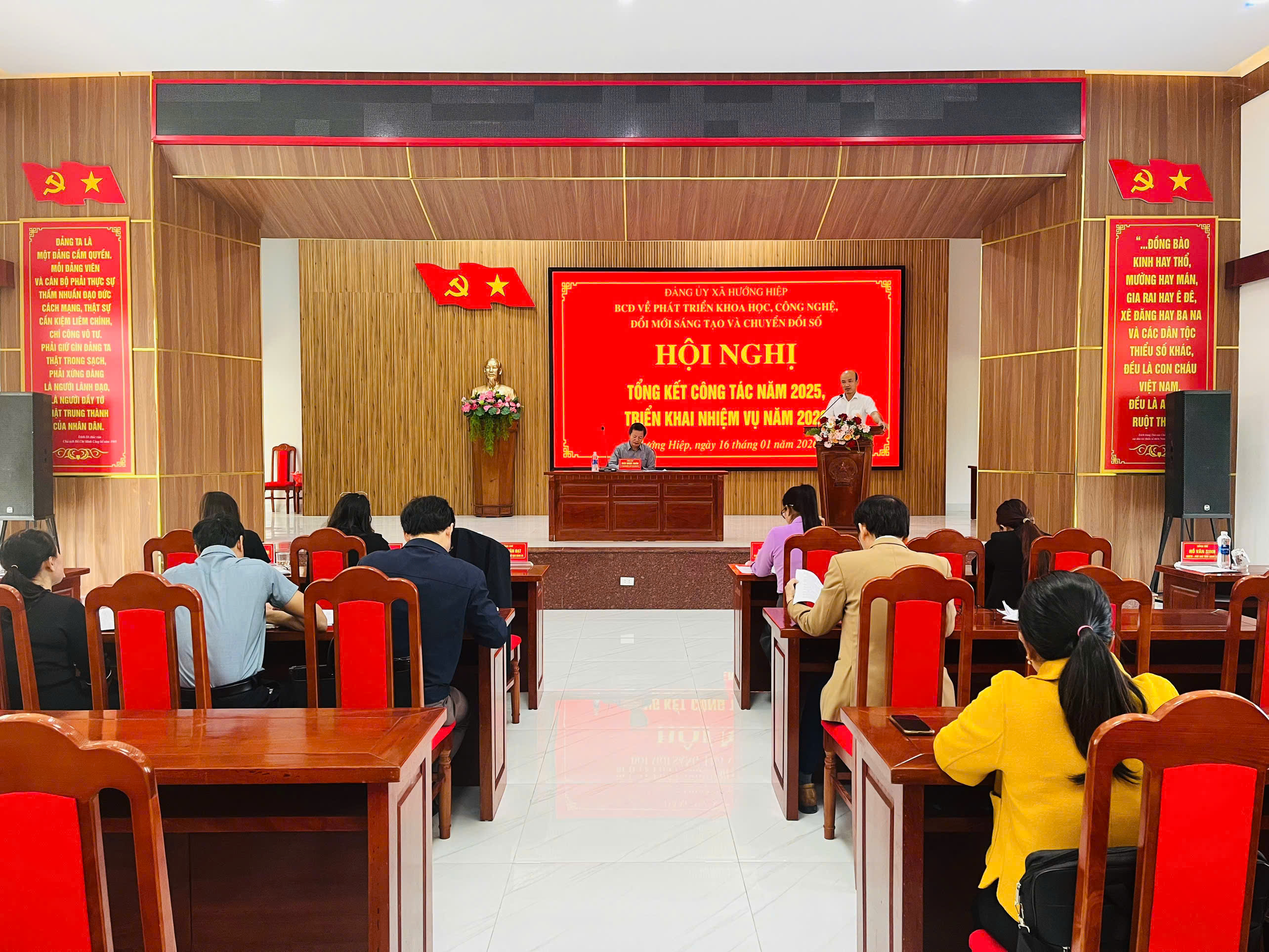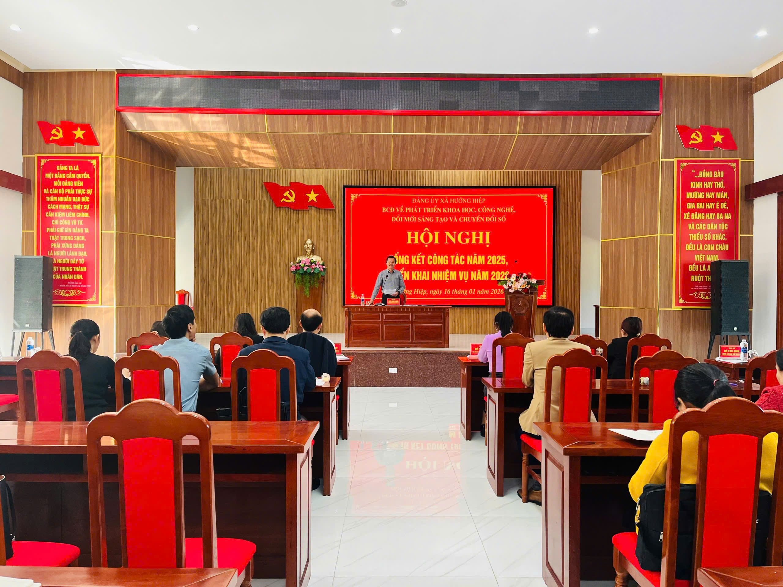 Ngày 16/01/2026, Đảng ủy xã Hướng Hiệp tổ chức Hội nghị tổng kết công tác phát triển khoa học, công nghệ, đổi mới sáng tạo và chuyển đổi số năm 2025, triển khai phương hướng, nhiệm vụ năm 2026. Đồng chí Thái Ngọc Châu, Bí thư Đảng ủy, Chủ tịch HĐND xã, Trưởng BCĐ 57 xã chủ trì hội nghị.