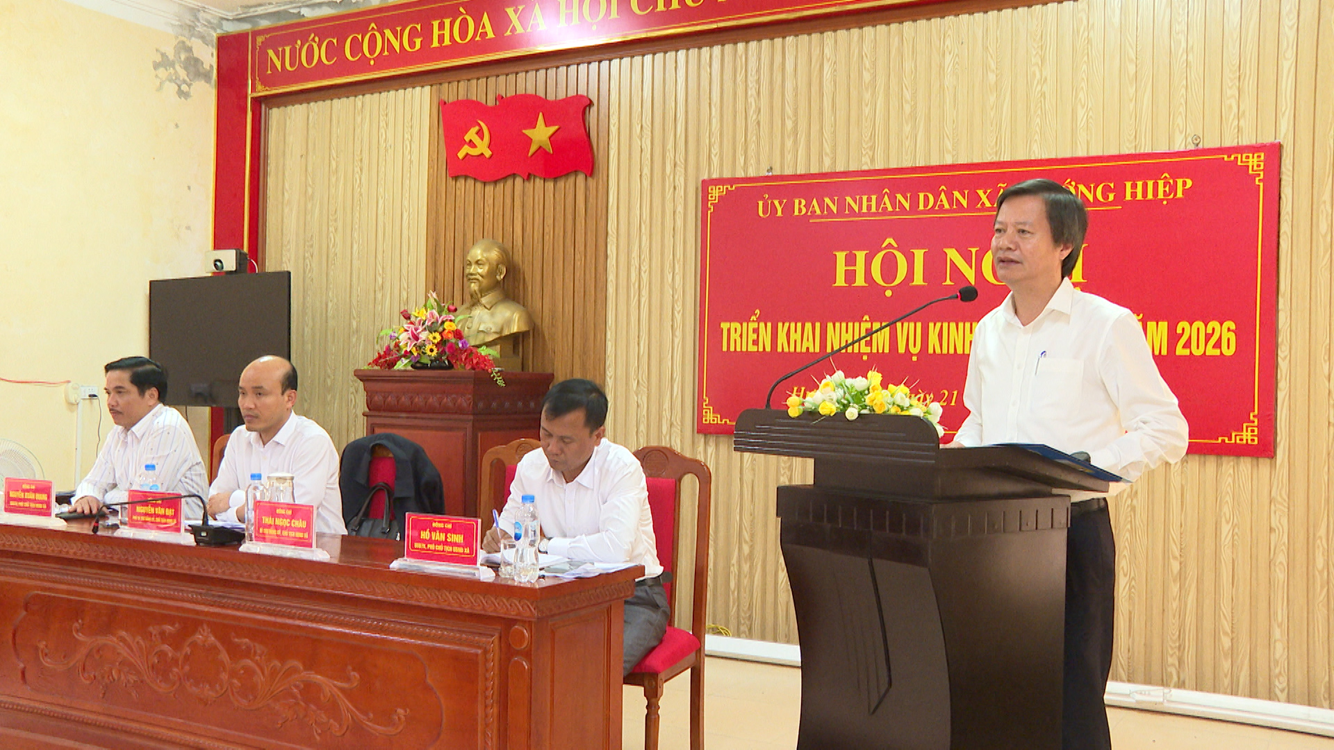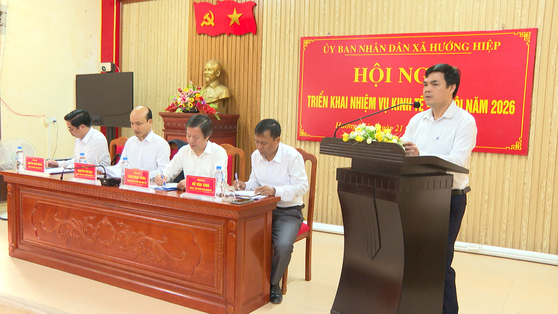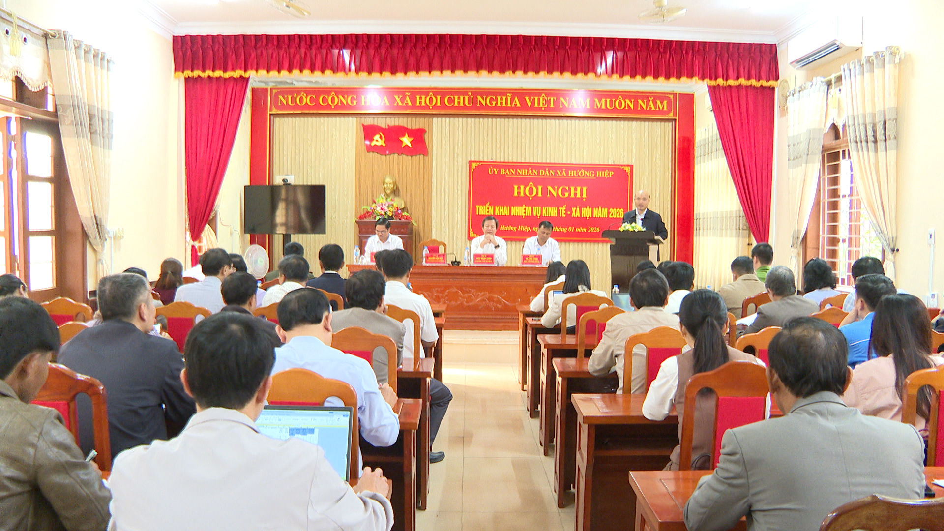 Ngày 21/01, UBND xã Hướng Hiệp tổ chức Hội nghị triển khai nhiệm vụ phát triển kinh tế - xã hội năm 2026. Dự hội nghị có đồng chí Thái Ngọc Châu - Bí thư Đảng ủy, Chủ tịch HĐND xã; đại diện Thường trực HĐND, UBMTTQVN xã; lãnh đạo các cơ quan, đơn vị, các thôn, khóm trên địa bàn xã. Tập thể lãnh đạo UBND xã chủ trì hội nghị.