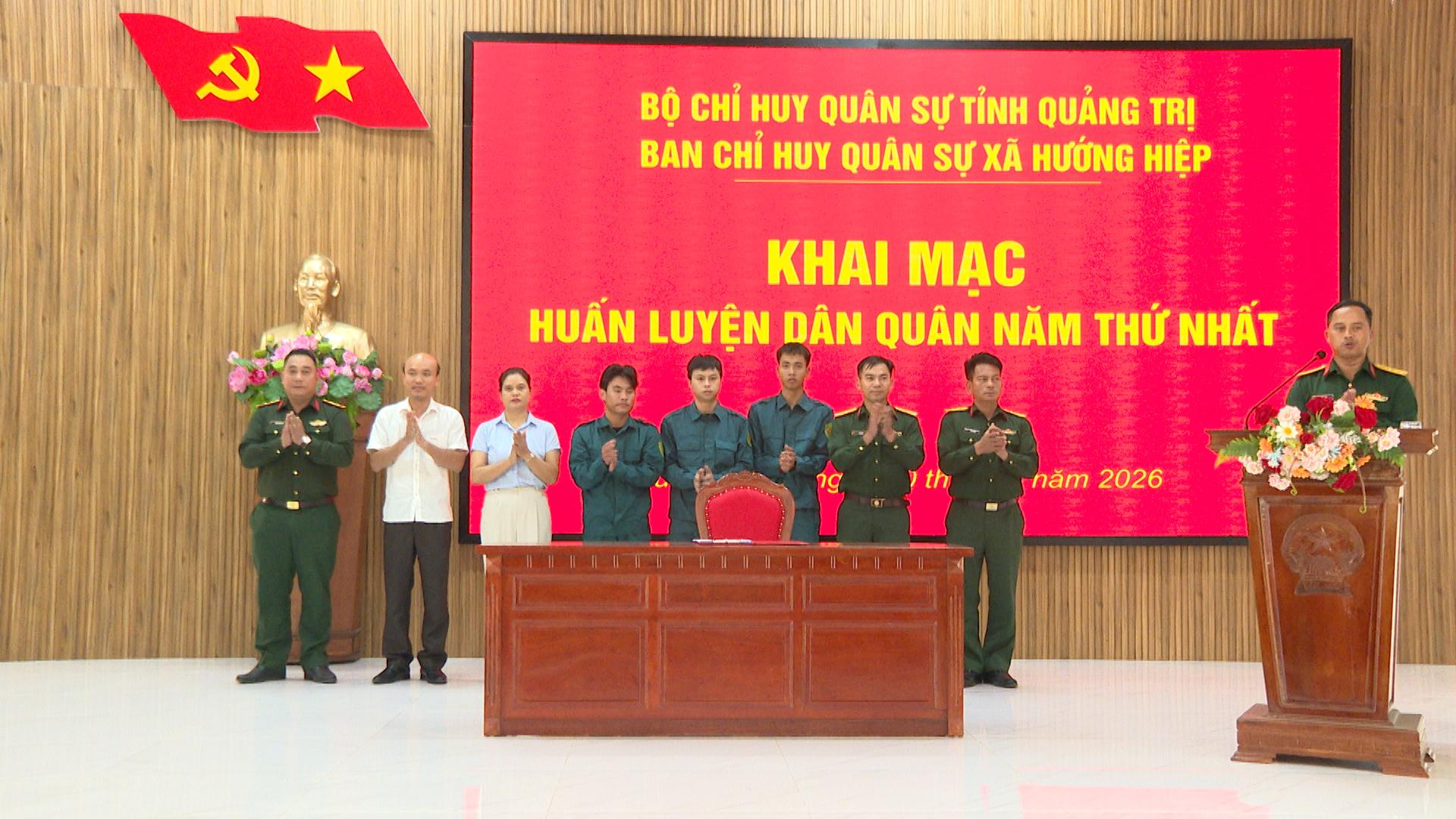 Sáng ngày 10/4, Ban Chỉ huy Quân sự (CHQS) xã Hướng Hiệp tổ chức Lễ khai mạc huấn luyện Dân quân năm thứ nhất năm 2026. Dự lễ có đại diện lãnh đạo Ban Chỉ huy phòng thủ khu vực 5 - Khe Sanh. Về phía địa phương có đồng chí Hồ Thị Cam – Phó bí thư Thường trực Đảng ủy, đồng chí Nguyễn Văn Đạt - Phó Bí thư  Đảng ủy, Chủ tịch UBND xã, đại diện lãnh đạo một số ban, ngành, đoàn thể xã cùng 37 đồng chí chiến sĩ Dân quân năm thứ nhất của xã.