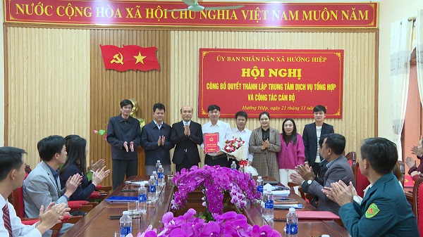 Tại Hội nghị, đã công bố Quyết định số 634/QĐ-UBND ngày 14/11/2025 của UBND xã Hướng Hiệp về việc thành lập Trung tâm Dịch vụ tổng hợp xã. Trung tâm Dịch vụ tổng hợp là đơn vị sự nghiệp công lập, trực thuộc UBND xã Hướng Hiệp; có tư cách pháp nhân, có trụ sở riêng, có con dấu riêng, tài khoản riêng theo quy định của pháp luật; chịu sự chỉ đạo, quản lý toàn diện, trực tiếp về mọi mặt của Ủy ban nhân dân xã Hướng Hiệp. Trung tâm Dịch vụ tổng hợp xã Hướng Hiệp được thành lập và đi vào hoạt động kể từ ngày 15/11/2025. Ông Võ Văn Tiến – Đảng ủy viên, được điều động và bổ nhiệm giữ chức Phó Giám đốc phụ trách Trung tâm.
