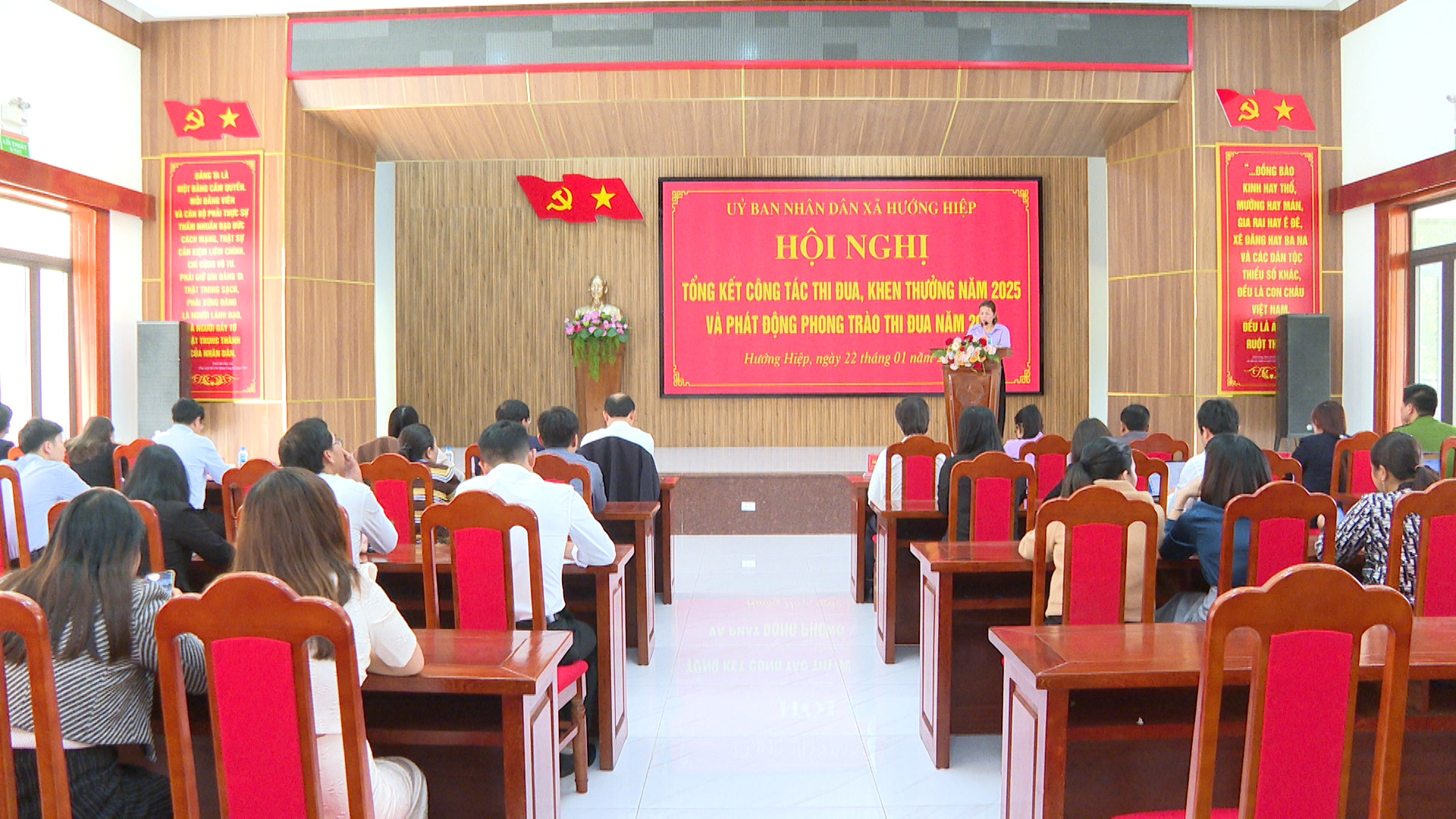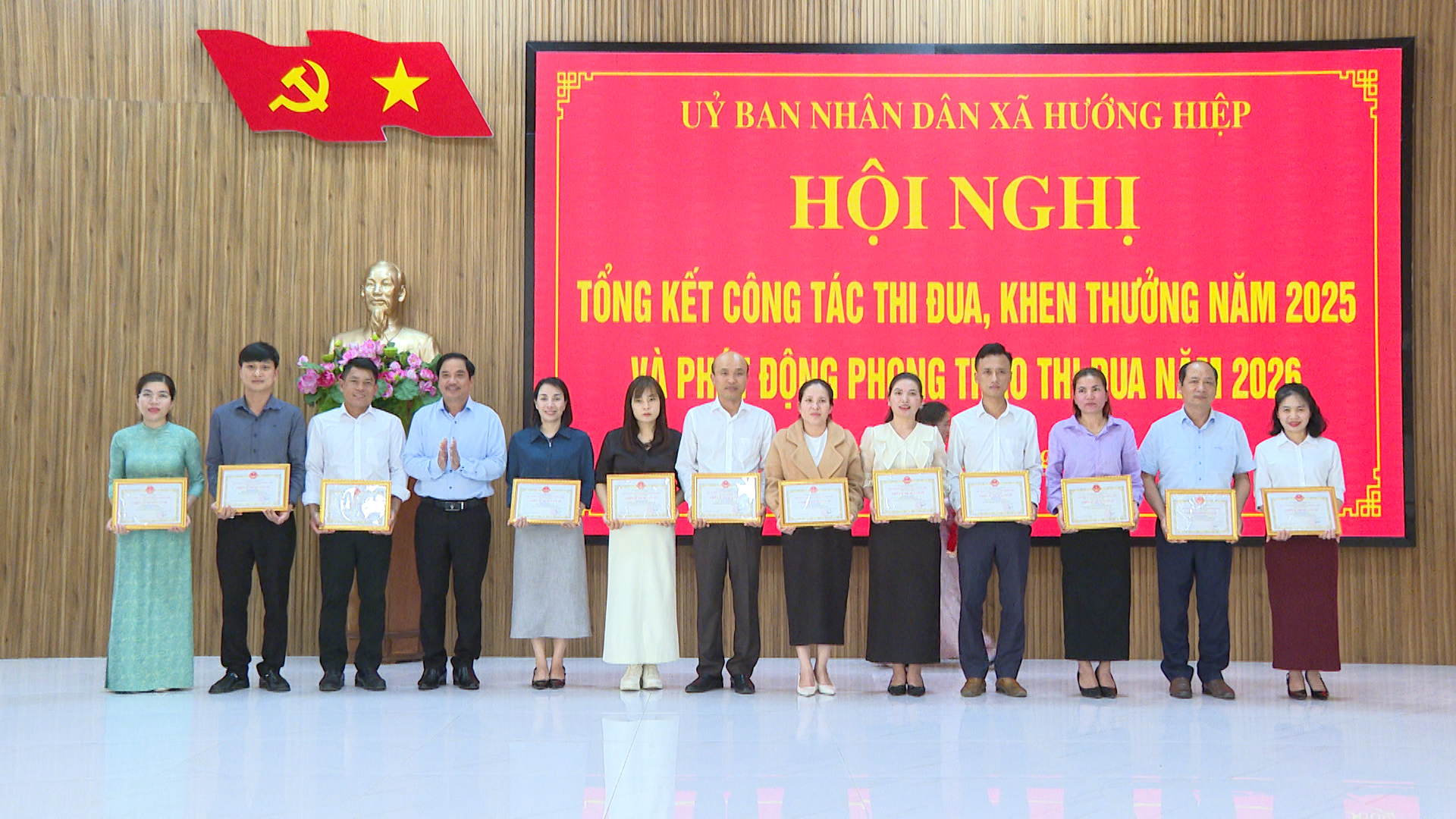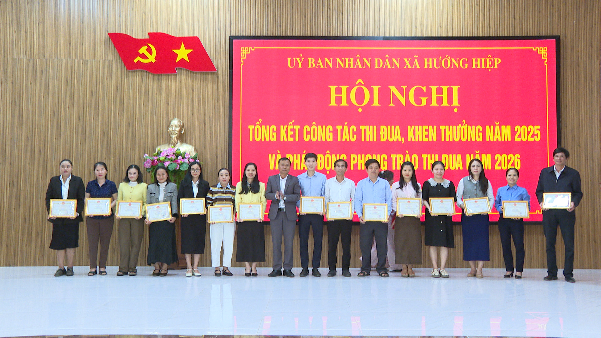Chiều ngày 22/01, UBND xã Hướng Hiệp tổ chức Hội nghị tổng kết công tác thi đua, khen thưởng năm 2025 và phát động phong trào thi đua yêu nước năm 2026. Dự hội nghị có đồng chí Trần Thắng Bình, Quyền Trưởng Ban TDKT tỉnh, về phía địa phương có đồng chí Thái Ngọc Châu - Bí thư Đảng ủy, Chủ tịch HĐND xã; cùng các đồng chí trong BTV Đảng ủy; TT HĐND; UBND; UBMTTQVN; đại diện lãnh đạo các ban, ngành đoàn thể xã và các cá nhân được trao thưởng trong dịp này.