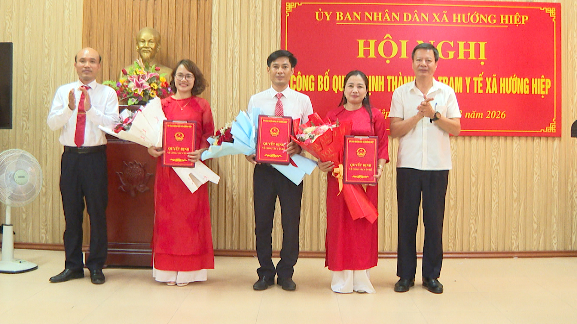 Chiều ngày 31/03/2026, UBND xã Hướng Hiệp tổ chức Hội nghị công bố Quyết định thành lập Trạm Y tế xã. Dự Hội nghị có đồng chí Thái Ngọc Châu – Bí thư Đảng ủy, Chủ tịch HĐND xã, đồng chí Nguyễn Văn Đạt – Phó Bí thư Đảng uỷ, Chủ tịch UBND xã; đại diện TT HĐND, UBND và lãnh đạo các ban, ngành xã.