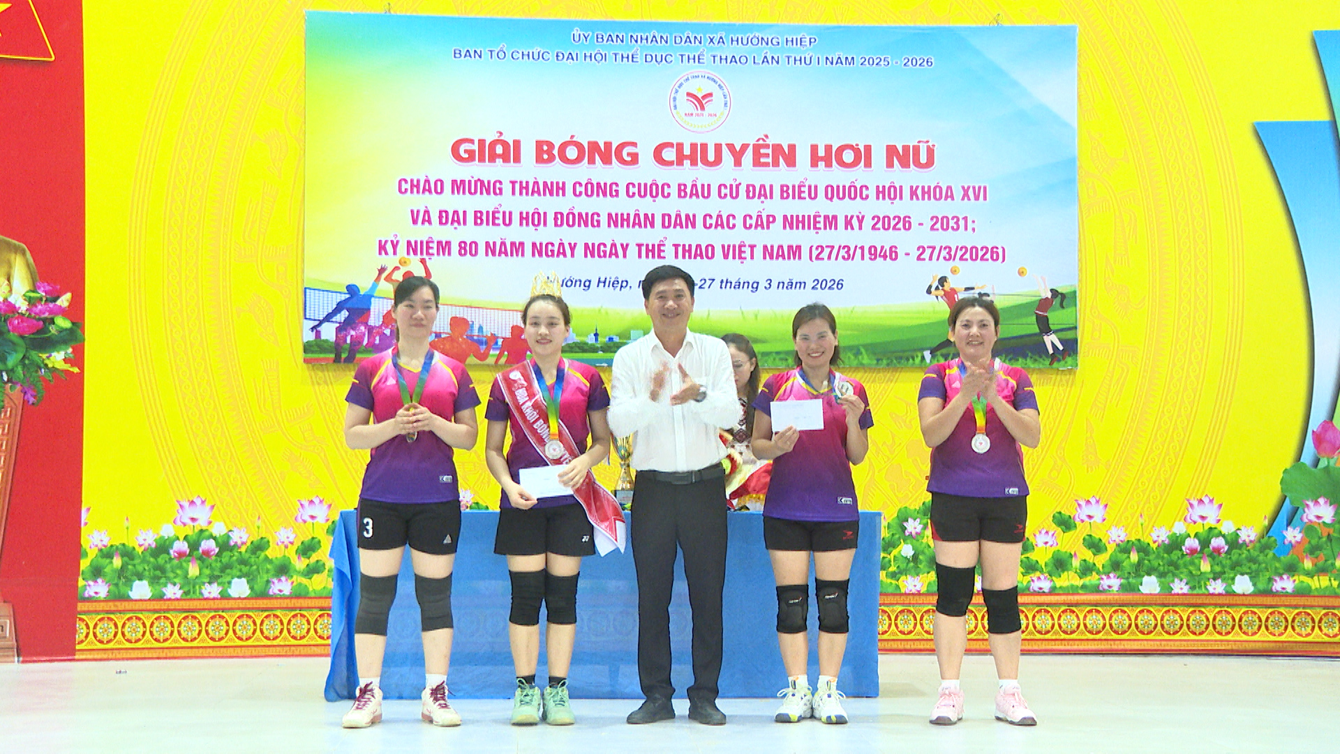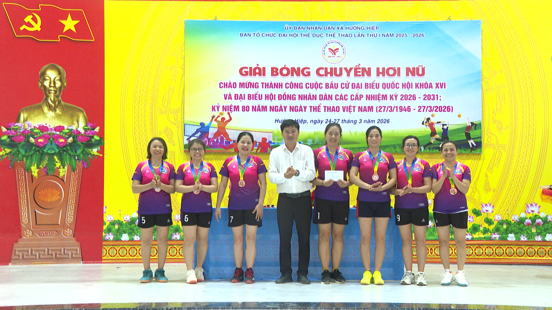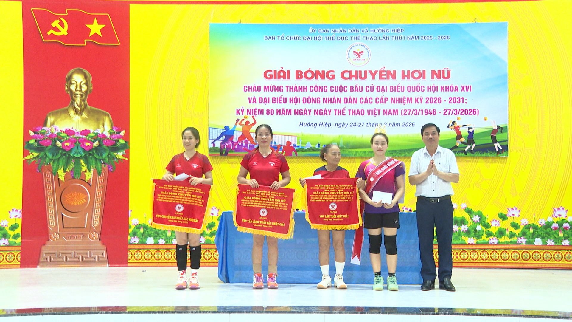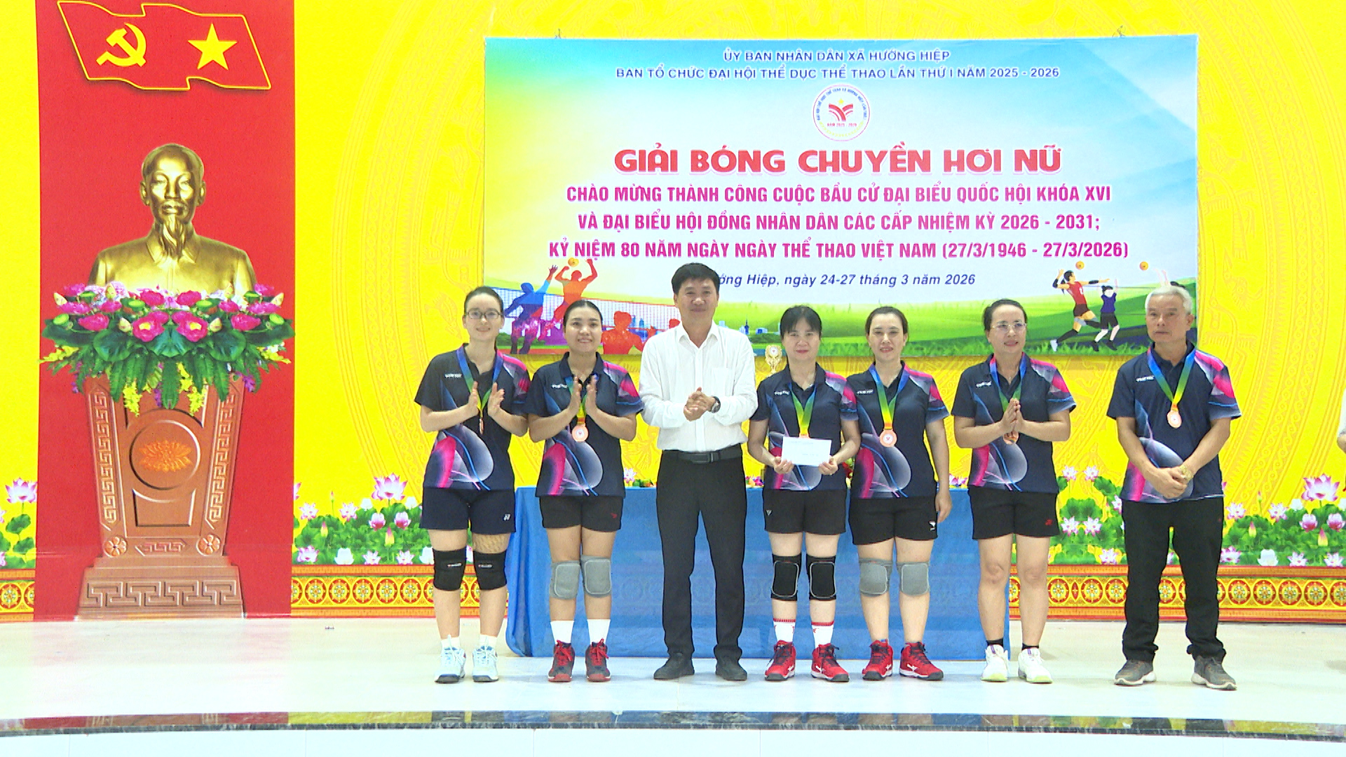 Chiều ngày 27/3, xã Hướng Hiệp tổ chức bế mạc giải bóng chuyền hơi nữ, đây là giải đấu nằm trong chương trình Đại hội Thể dục - thể thao xã Hướng Hiệp lần thứ I, năm 2025 – 2026. Dự lễ có đồng chí Nguyễn Xuân Quang – UVBTV Đảng ủy, Phó Chủ tịch UBND xã cùng đại diện lãnh đạo các cơ quan, đơn vị, địa phương trên địa bàn xã.