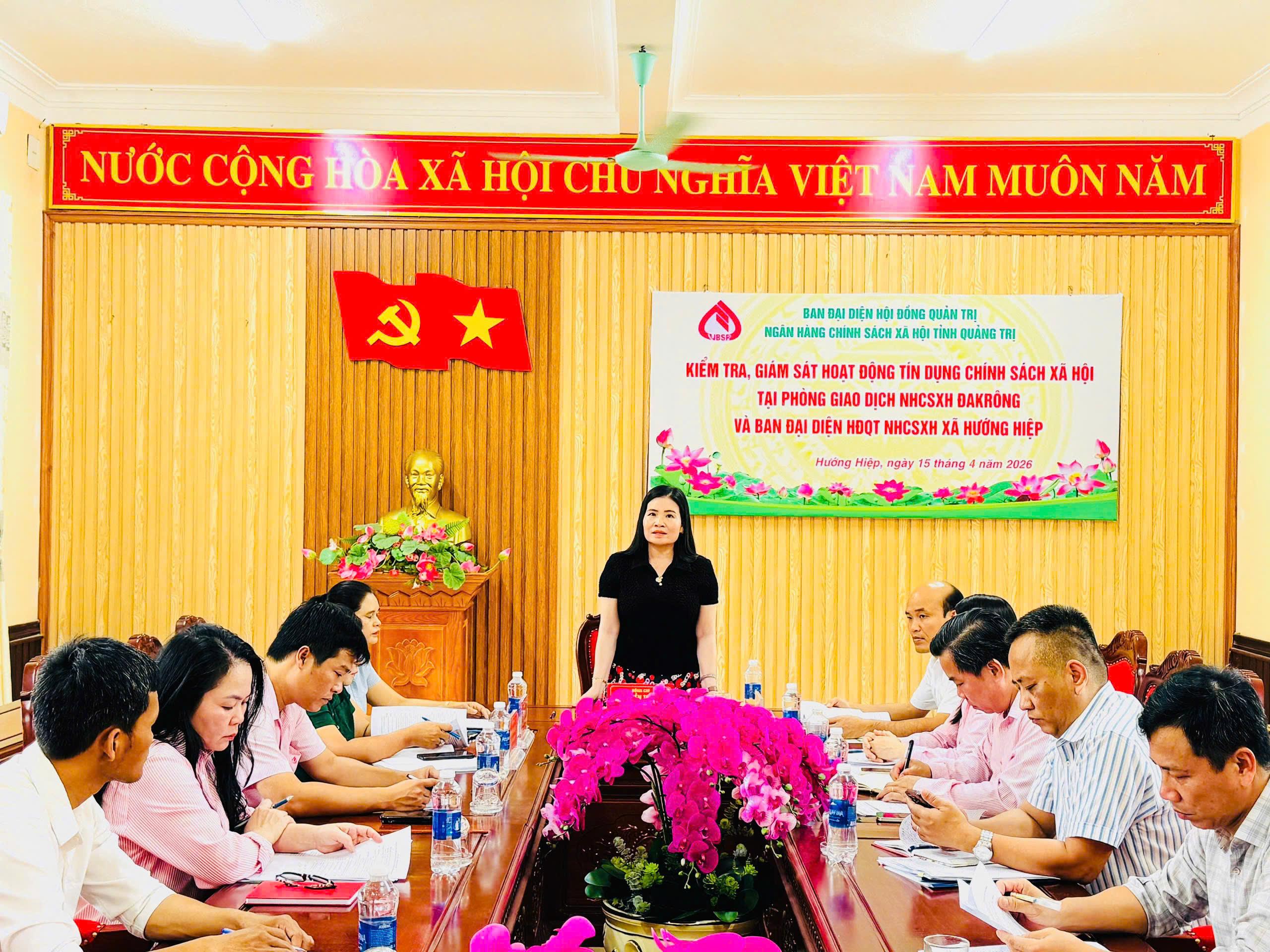 Ngày 15/4/2026, Đoàn kiểm tra, giám sát  Hội đồng Quản trị (HĐQT) Ngân hàng Chính sách xã hội (NHCSXH) tỉnh làm việc với Ban đại diện HĐQT NHCSXH Đakrông và ban đại diện HĐQT NHCSXH xã Hướng Hiệp.