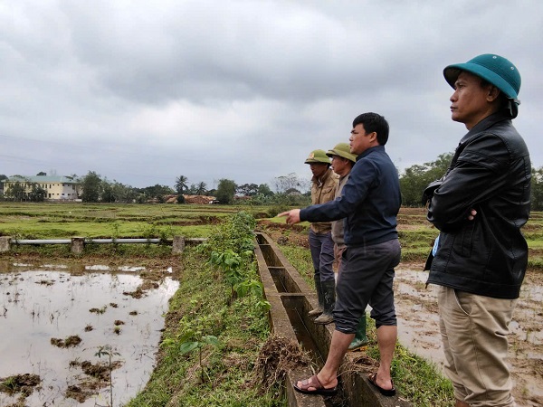 Lãnh đạo UBND xã kiểm tra một số công trình thủy lợi trên địa bàn xã