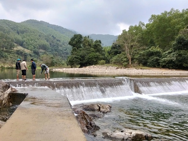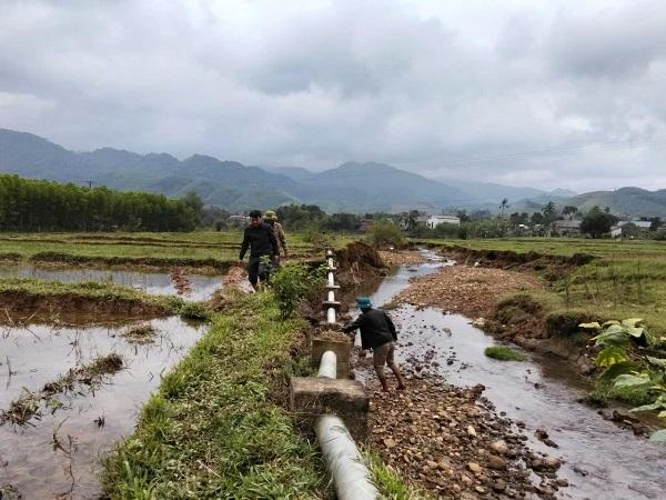 Đồng chí Hồ Văn Sinh - Phó Chủ tịch UBND xã kiểm tra các công trình thủy lợi trên địa bàn xã