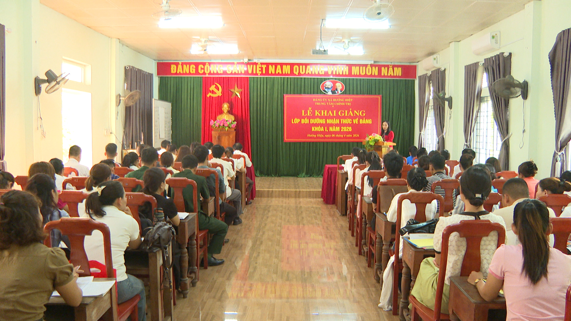 Sáng ngày 06/4, Trung tâm chính trị xã Hướng Hiệp tổ chức Lễ Khai giảng Lớp Bồi dưỡng nhận thức về Đảng, khóa I năm 2026. Dự lễ khai giảng có lãnh đạo Ban Xây dựng Đảng, Đảng ủy các xã Ba Lòng, Đakrông, Hướng Hiệp cùng 60 quần chúng ưu tú đến từ các địa phương Ba Lòng, Đakrông và Hướng Hiệp.